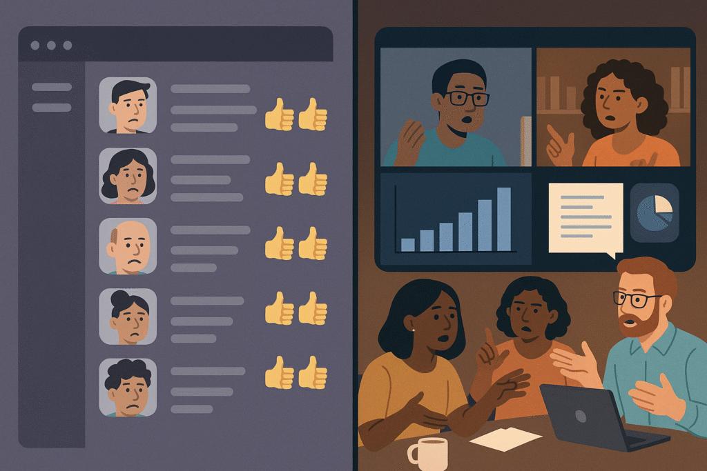 Remote teams often mistake “everyone replied ‘👍’ in Slack” for true alignment. The Moon Challenge reveals a harsh truth: nodding along digitally rarely equals shared understanding. In fact, the exercise shows that groups that engage in respectful debate — challenging assumptions with evidence — consistently outperform those that rush to agree.